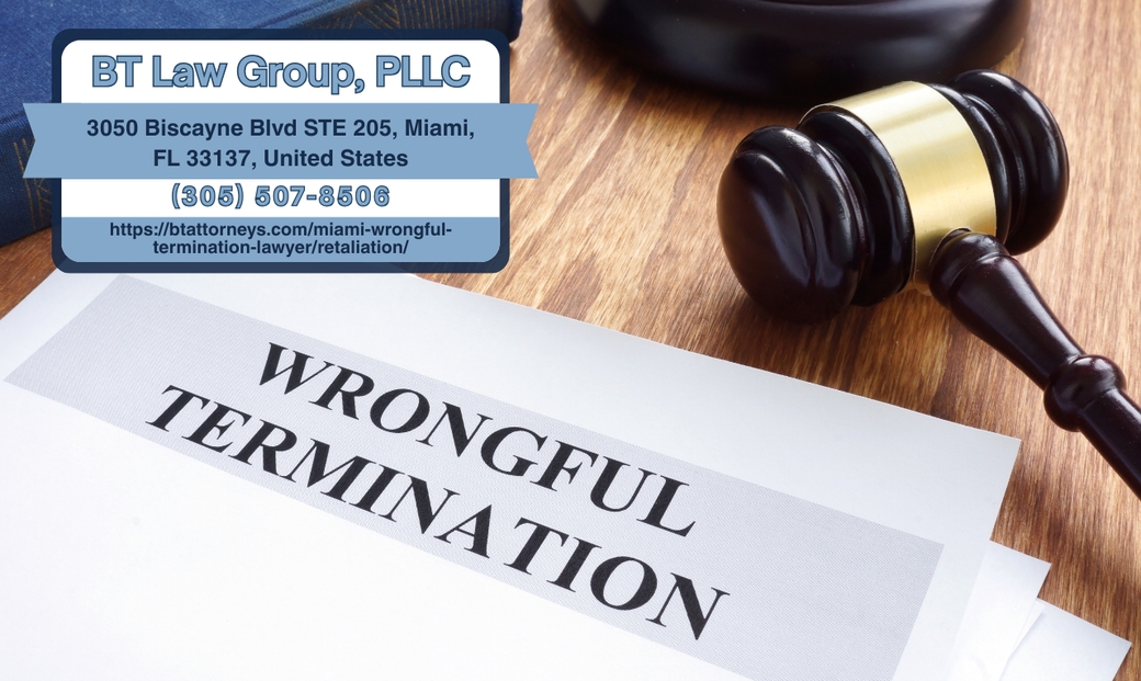 MIAMI, FL - Employees who report discrimination, participate in workplace investigations, or file complaints with government agencies are protected from retaliatory termination under federal and Florida law. Miami employment attorney Jason D. Berkowitz of BT Law Group (https://btattorneys.com/miami-wrongful-termination-lawyer/retaliation/) explains the legal framework protecting employees from retaliation and the remedies available to those wrongfully terminated.