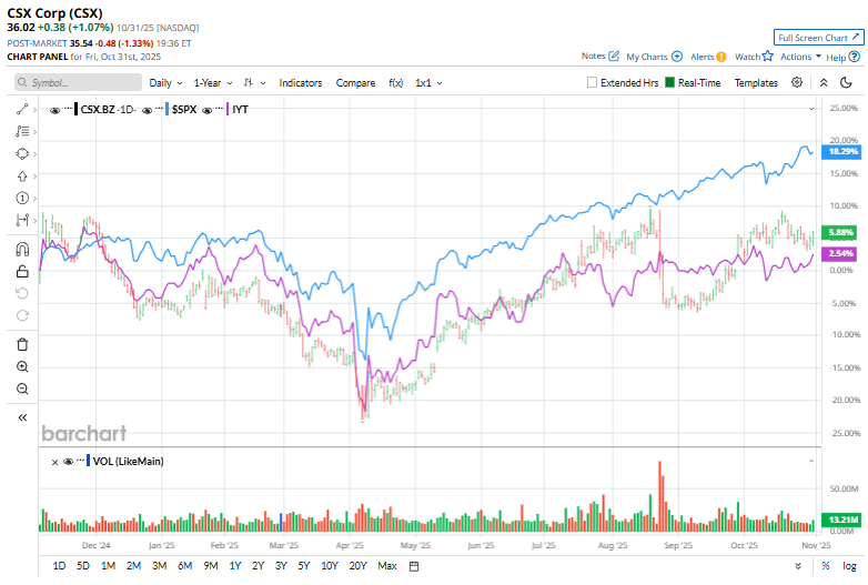 The transportation giant has notably lagged behind the broader market over the past year. CSX stock has gained 7.4% over the past year and 11.6% on a YTD basis. In contrast, the S&P 500 Index ($SPX) has surged 17.7% over the past year and has returned 16.3% in 2025.