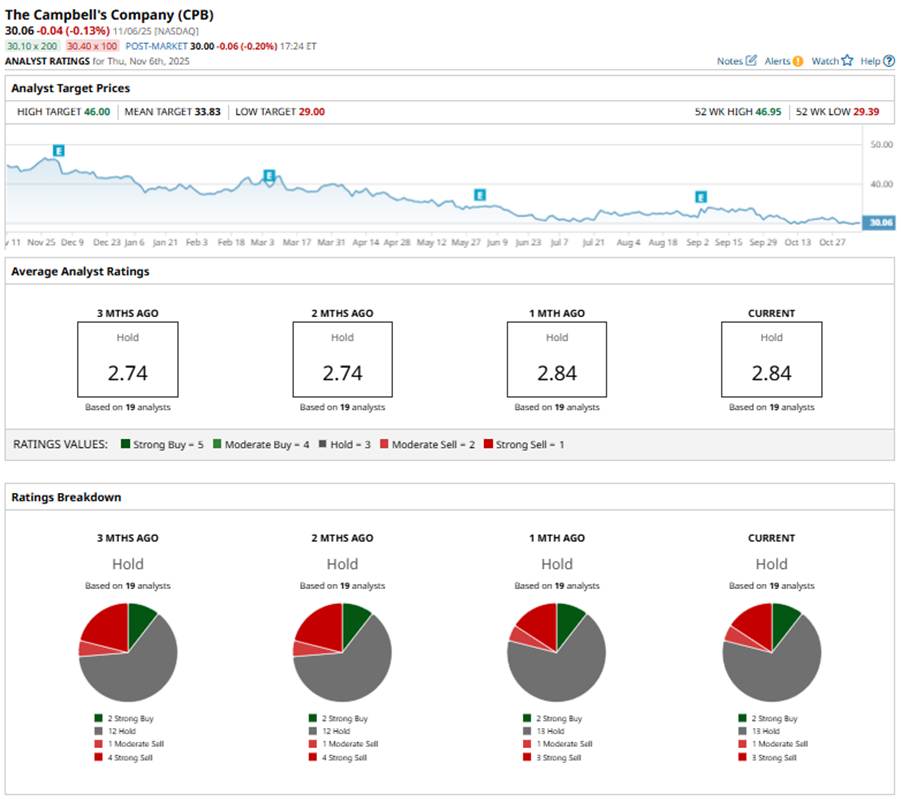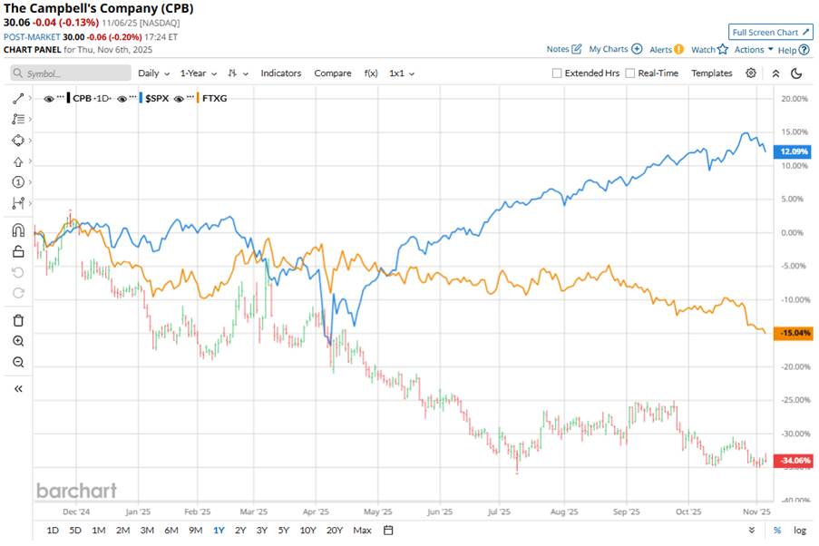 Shares of Campbell’s have significantly underperformed the broader market. CPB stock has plummeted 35% over the past 52 weeks and 28.2% on a year-to-date (YTD) basis, compared to the S&P 500 Index’s ($SPX) 13.4% surge over the past year and 14.3% gains in 2025.