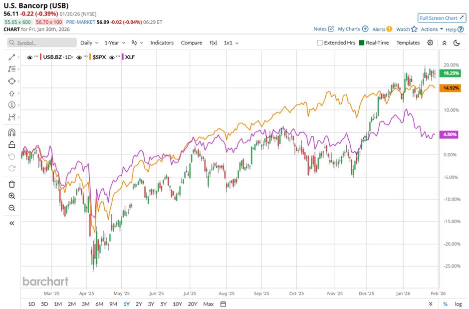 Shares of the Minneapolis, Minnesota-based company have outpaced the broader market over the past 52 weeks. USB stock has increased 16.9% over this time frame, while the broader S&P 500 Index ($SPX) has returned 14.3%. Moreover, shares of the company are up 5.2% on a YTD basis, compared to SPX’s 1.4% gain.