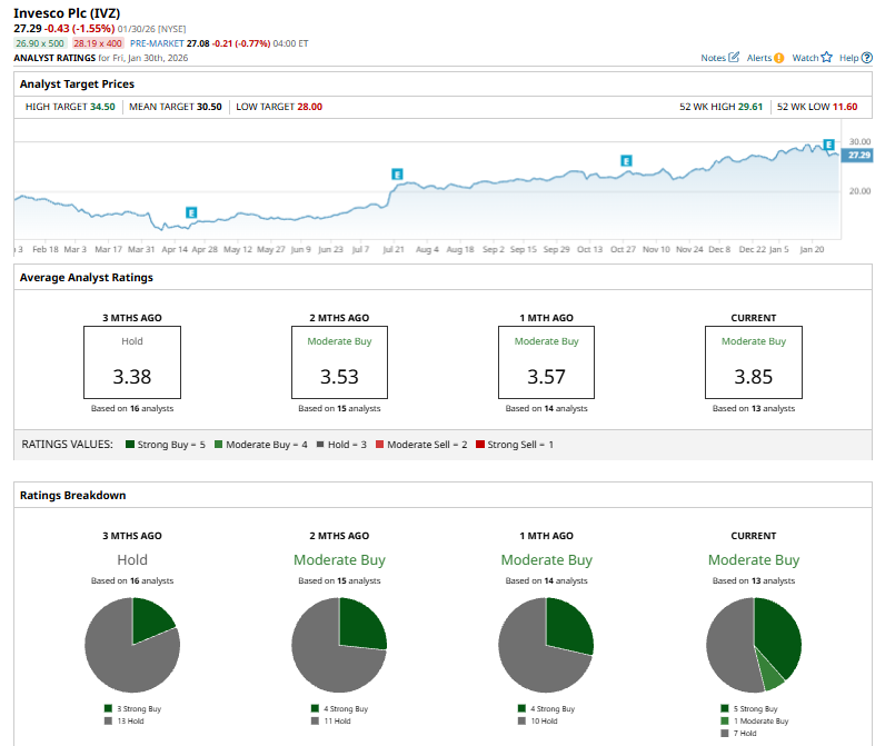 On January 21, RBC Capital Markets upgraded Invesco from “Sector-Perform” to “Outperform” and raised its price target to $35 from $25.