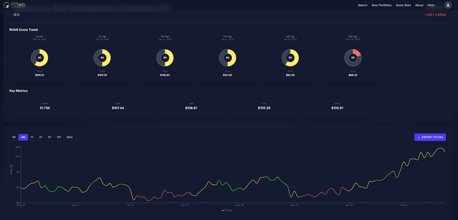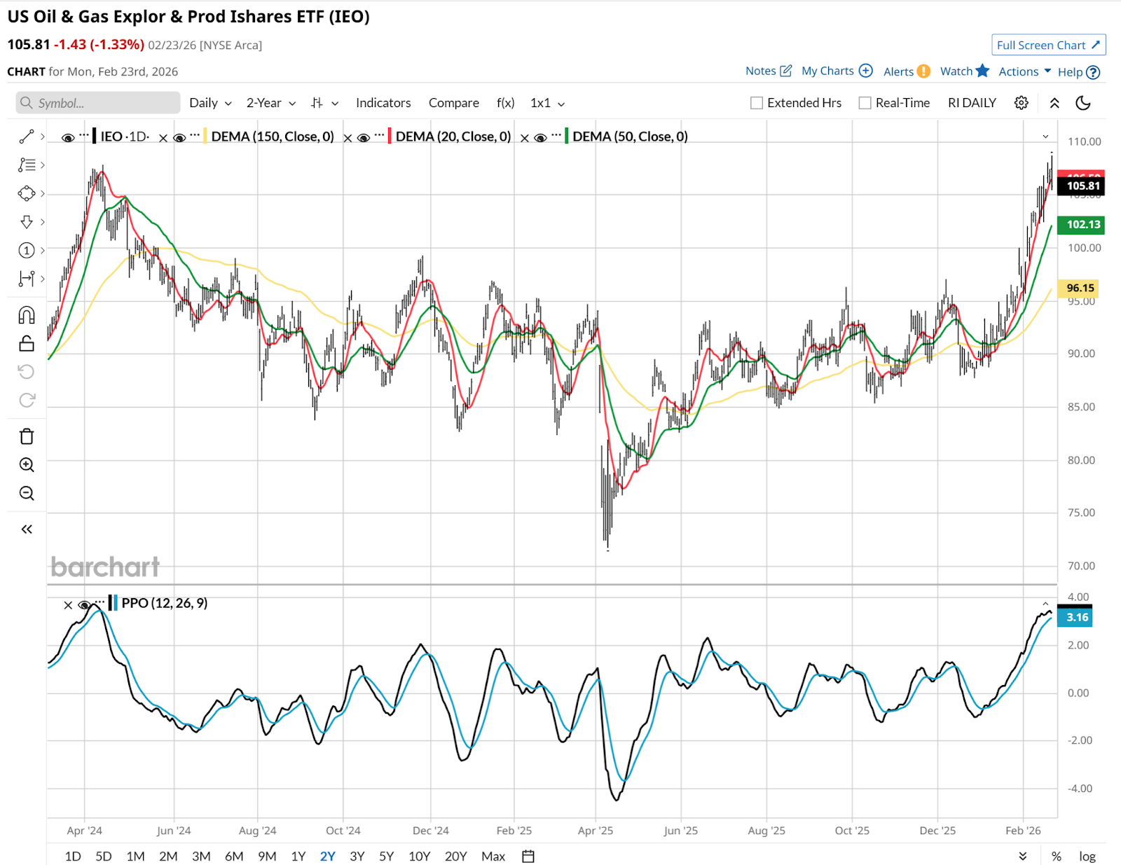 IEO has followed a classic ROAR pattern recently. In late January, its score broke out of the neutral range and hit 70, and then 80. Both are within the green zone, which indicates lower-than-normal risk of major loss in the security.