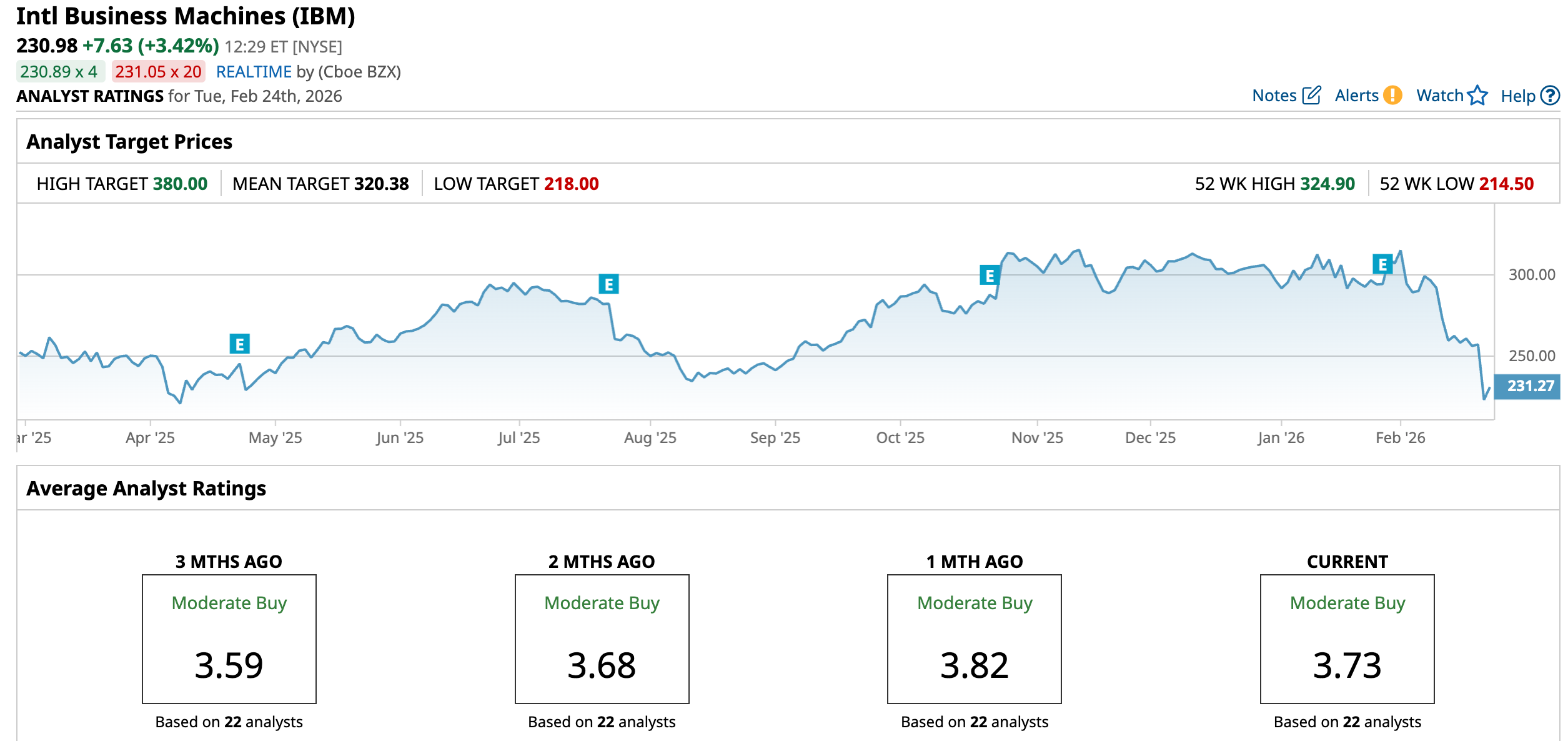 The upside potential is what really stands out. The average price target of $320.38 implies a possible 38.7% rebound from here. And at the high end, the Street’s most optimistic target of $380 suggests IBM shares could climb as much as 64.5% if momentum turns in its favor.