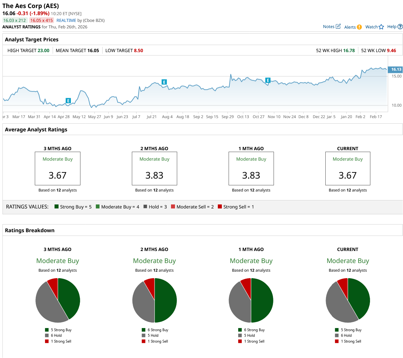 Looking across the full analyst group, all 12 covering the stock rate it a consensus “Moderate Buy,” with an average target of $16.05. With AES recently trading around $16.06, the shares sit almost exactly on par with that mean target, which suggests that Street estimates are lagging the pace at which the market is adjusting its view of AES as a high-yield, data-center-focused utility.