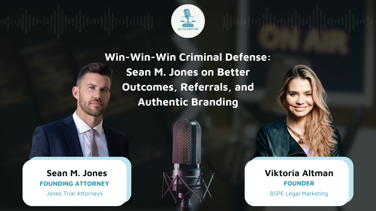The Law Firm Accelerator Podcast, hosted by Viktoria Altman, continues to provide valuable insights for legal professionals aiming to grow their practices. In the latest episode, Viktoria interviews Sean M. Jones, the founder of Jones Trial Attorneys, a distinguished criminal defense firm based in San Diego, California. This conversation explores the long-game approach to building a criminal defense practice through trial readiness, reputation, and a referral-driven client base. For more information on these strategies, visit BSPE Legal Marketing.