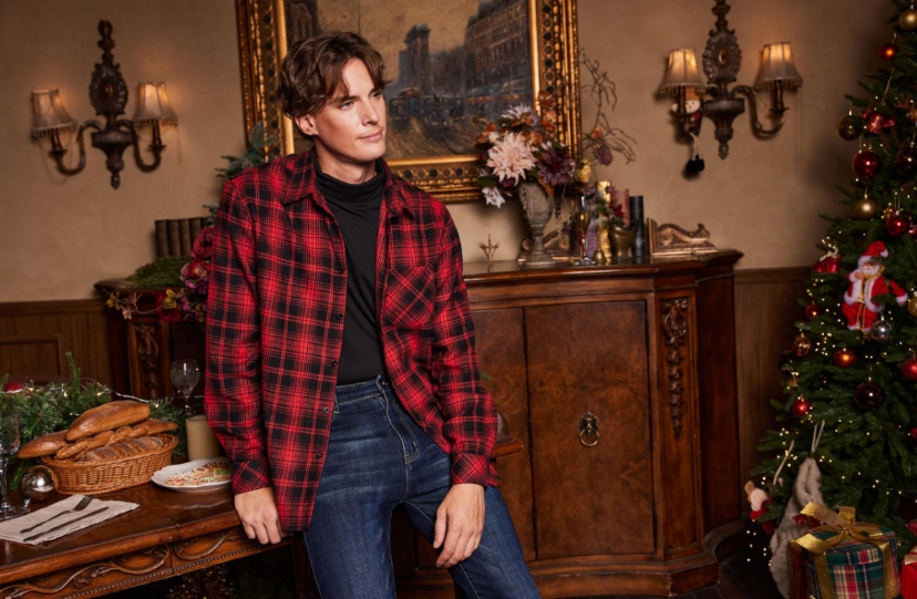 Street lamps are wrapped in gold foil, and the air is filled with the scent of cinnamon and mulled wine. The most touching aspects of December are perhaps these softly glowing everyday moments—and every seasonal wardrobe should include a red plaid flannel shirt steeped in memories.