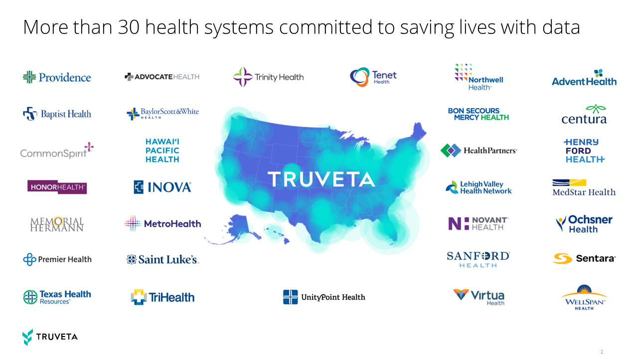 Truveta is a growing collective of health systems that provide more than 18% of all daily clinical care in the US. Truveta is trusted by more than 40 leading healthcare and life science customers to study safety and effectiveness, improve patient care, and train medical AI. Across these leading organizations, Truveta connects data, people, and ideas to pursue a shared mission of saving lives with data.