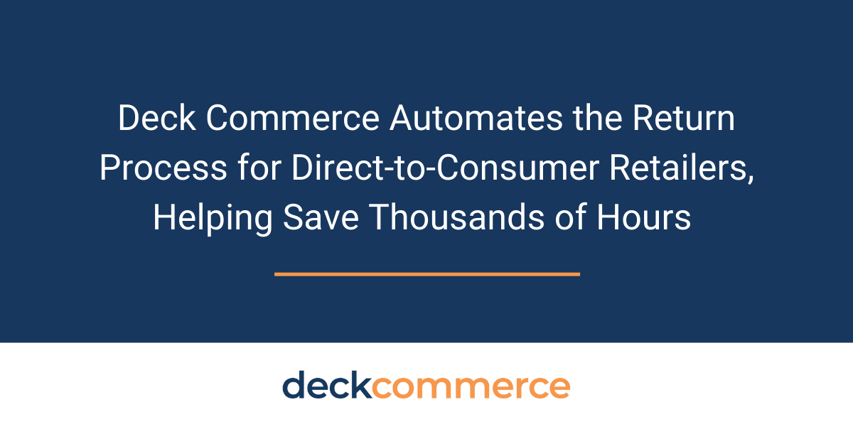 St. Louis, MO, March 23, 2023 (GLOBE NEWSWIRE) -- Deck Commerce, a leading order management system for direct-to-consumer retailers, automates the returns process saving retailers thousands of hours. The Deck Commerce OMS enables retailers to automate and coordinate the returns process, speeding the returns process, optimizing reverse logistics, and increasing customer satisfaction.