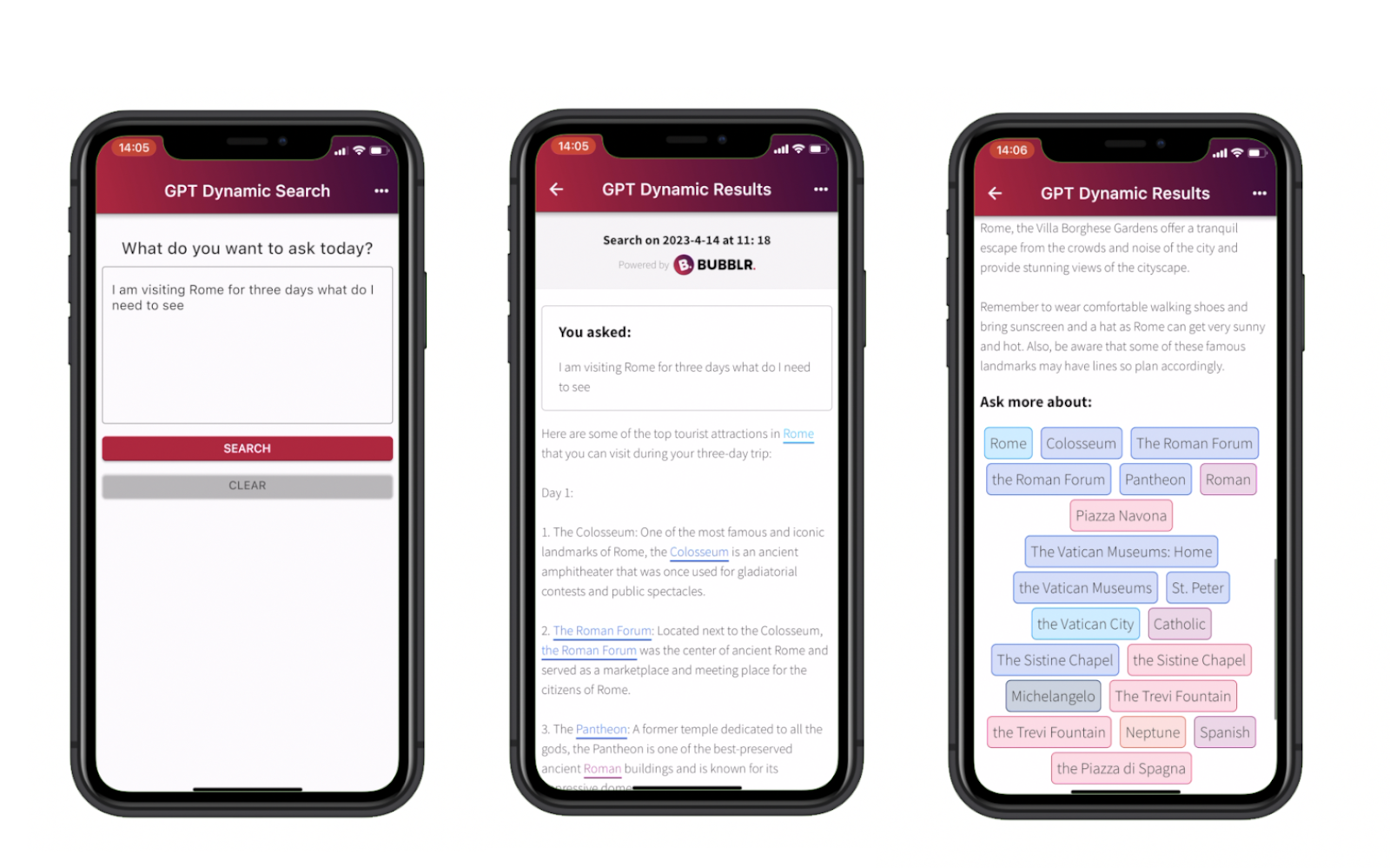 "Contextual Enveloping of Dynamic Hypertext Links," truly encapsulates Bubblr's innovative approach to information search on the internet. This utility patent is distinguished by its first two claims, which, when combined, create a unique method. It focuses on contextualizing secondary searches based on the results of an initial primary search. In addition, this automatically generates hypertext links in real-time, with these links going to pages that are relevant to the primary search. Chat GPT and other LLMs were not widely known when this patent was first filed in November 2022. However, Chat GPT (and other LLM AI systems, for that matter) is a perfect application for this patent. Consequently, we set about designing and developing an IOS and Android proof of concept app named GPTDynamic.