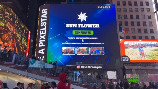 Sunflower makes its debut on the TXS big screen in Times Square, broadcasting the voice of borderles