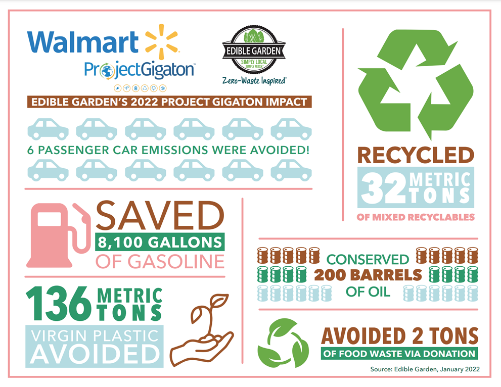 Mr. Jim Kras, Chief Executive Officer of Edible Garden, commented, “We were previously named a Project Gigaton “Giga Guru,” due to our leadership and commitment to sustainability in the Controlled Environment Agriculture space. I am proud to report we have continued to reduce waste, while increasing overall supply chain efficiencies, utilizing solutions such as our patented, Greenthumb™ software. Our Zero-Waste Inspired® approach is intended to benefit both consumers and our retail partners. We are especially honored to collaborate with Walmart who clearly shares our vision for a more sustainable future.”